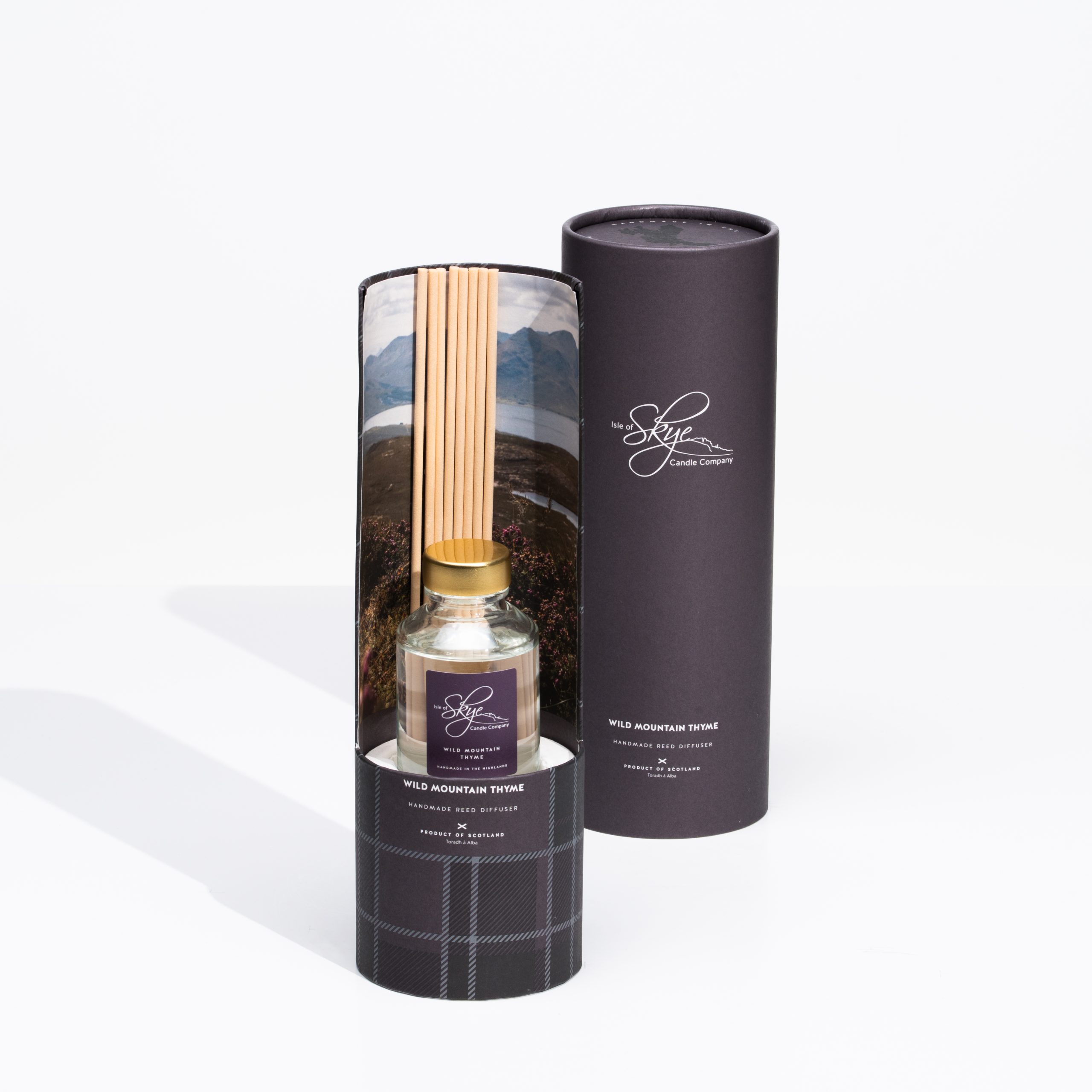 Inspired by the beauty of the untamed Scottish mountains, where wild thyme and heather create a captivating purple landscape. A refreshing and herbaceous scent, crafted from a blend of thyme and petitgrain, complemented by base notes of orange and rosemary. The fragrance is thoughtfully balanced with galbanum and woody pine notes to add depth and complexity.
